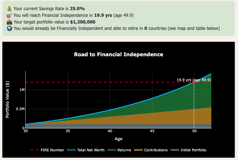 Figure 1: Screenshot of our FI Calculator (free, email unlock).